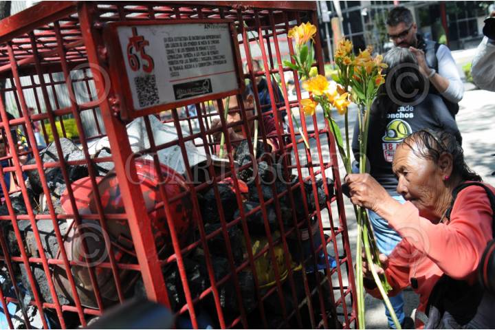 CIUDAD DE MÉXICO, 19FEBRERO2024. - Una persona coloca flores en el antimonumento a los 65 mineros fallecidos en Pasta de Conchos. FOTO: DANIEL AUGUSTO /CUARTOSCURO.COM