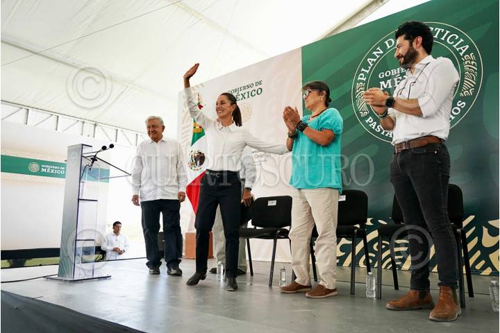 SAN JUAN DE SABINAS, COAHUILA, 14JUNIO2024.- Andrés Manuel López Obrador, presidente de México, acompañado de la presidenta electa de México, Claudia Sheinbaum, presidieron el Plan de Justicia para Pasta de Conchos. FOTO: MANUEL RODRÍGUEZ MURO/CUARTOSCURO.COM