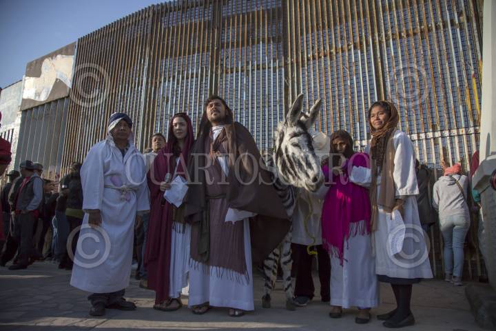 TIJUANA, BAJA CALIFORNIA, 16DICIEMBRE2017.- Por vigésima cuarta edición se llevó a cabo la Posada sin Fronteras, evento organizado por asociaciones civiles y de protección a los derechos humanos que trabajan a favor de los migrantes. La sede fue en ambos lados del muro fronterizo, junto al Faro de Playas de Tijuana, misma que sirvió de escenario para la escenificación de una pastorela que representó los distintos grupos migratorios que día a día intentan cruzar la frontera entre México y Estados Unidos. También se honró la memoria de los migrantes que durante este año han perdido la vida en la línea fronteriza. FOTO: CHRISTIAN SERNA /CUARTOSCURO.COM