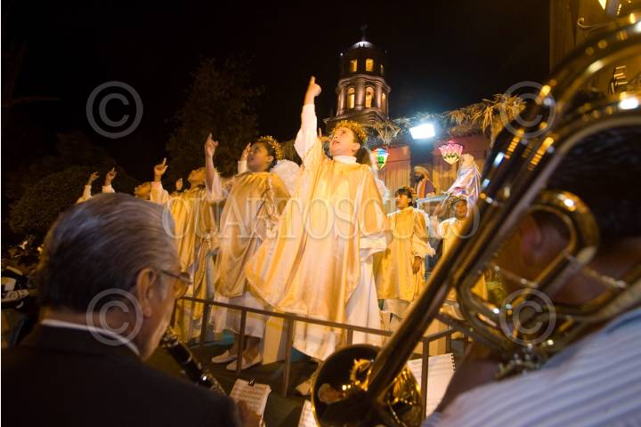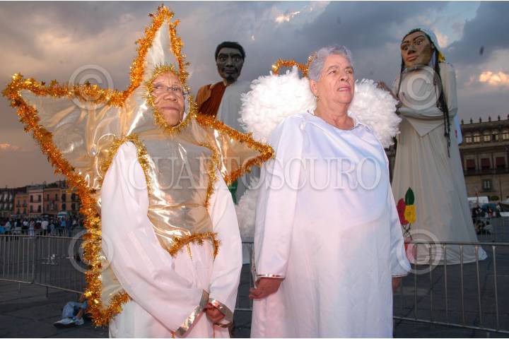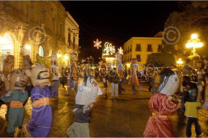 QUERETARO, QUERETARO 20 DICIEMBRE 2005.-Recorrido de las tradicionales Mojigangas y el ¨Carro de la Posada¨ por las principales calles del centro histórico de la ciudad de Querétaro durante esta temporada navideña. FOTO: Fabiola Mapy/CUARTOSCURO.COM