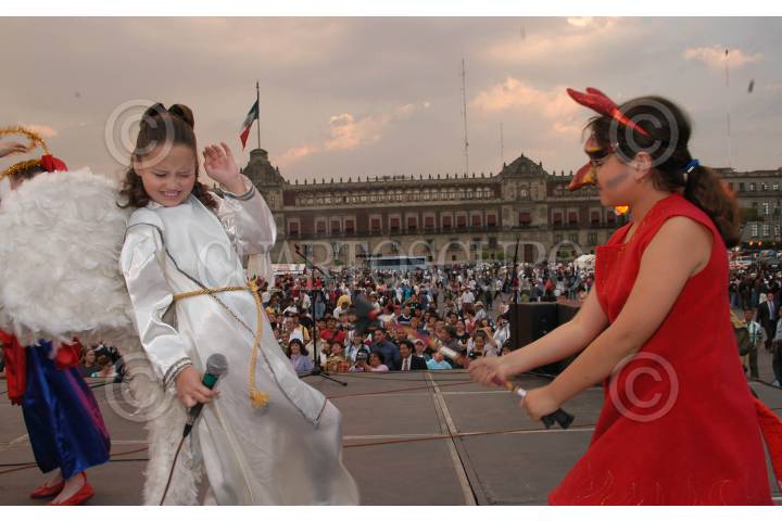MÈXICO, D.F. 14DICIEMBRE2005.- En la plancha del zócalo capitalino se instalarón cuatro escenarios con motivo del XIII Festival Hispanoamericano de Pastorelas, organizado por Arturo Morell, la Secretaría de Cultura de la Ciudad de México y diferentes organizaciones culturales. FOTO: Miriam Sánchez/CUARTOSCURO.COM
