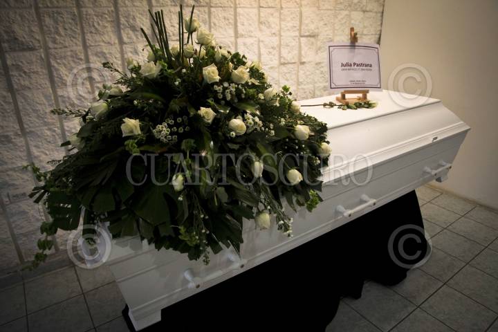 CULIACAN,SINALOA 11FEBRERO2013.- Desde muy temprana hora arribo al aeropuerto de la ciudad de Culiacán el feretro con los restos de la artista Sinaloense Julia Pastrana, mejor conocida como la "mujer Mono", originaria de Sinaloa de Leyva donde mañana sera enterrada en un cripta especial para resguardar la seguridad y evitar que sea robada. Durante su corta vida Pastrana logro fama mundial en el siglo XIX al ser exhibida en circos y ferias. Julia, nació en 1834 en México y murió en 1860 en Rusia, horas después de dar a luz a un bebé con características muy similares el cual también perdería la vida 35 horas después, los dos fueron momificados para posteriormente seguir siendo exhibidos y analizados por científicos entre ellos Charles Darwin. En la conferencia de prensa estuvieron presentes el director del Archivo Histórico, Gilberto López Alanís, el historiador Ricardo Mimiaga, la artista Laura Anerson Barbata y la directora del Instituto Sinaloense de cultura María Luisa Miranda. FOTO: RASHIDE FRÍAS /CUARTOSCURO.COM