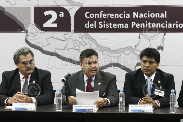 MÉXICO, D.F., 29OCTUBRE2009.- Saúl Torres Millan, Coordinador Regional Noroeste de la SSP, Patricio Patiño Arias, Subsecretario del Sistema Penitenciario y José de Jesús Ureña Coordinador Regional Noroeste de la SSP, durante la conferencia de prensa de la 2da reunión nacional del sistema penitenciario. FOTO: SAÚL LÓPEZ/CUARTOSCURO.COM