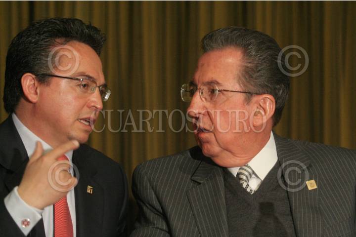 MÉXICO, D.F., 26ENERO2011.- Rocendo González Patiño, procurador agrario y Abelardo Escobar Prieto, secretario de la Reforma Agraria, durante la presentación "Estadísticas Agrarias 2011". FOTO: SAÚL LÓPEZ/CUARTOSCURO.COM