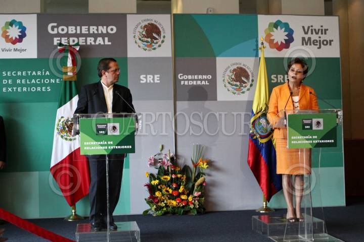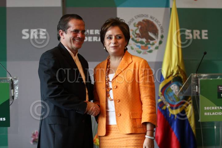 MÉXICO, D.F., 24JUNIO2011.- Ricardo Patiño, secretario de Relaciones Exteriores de Ecuador y Patricia Espinoza, secretaria de Relaciones Exteriores durante una conferencia de prensa en la sede de la cancillería. FOTO: RODOLFO ANGULO/CUARTOSCURO.COM