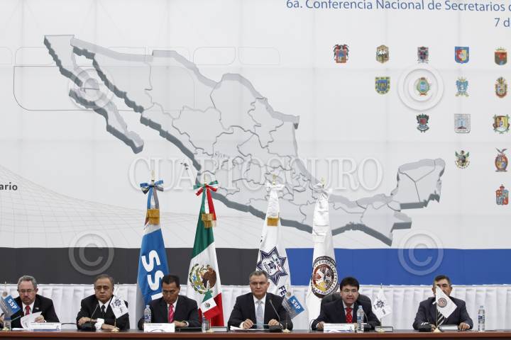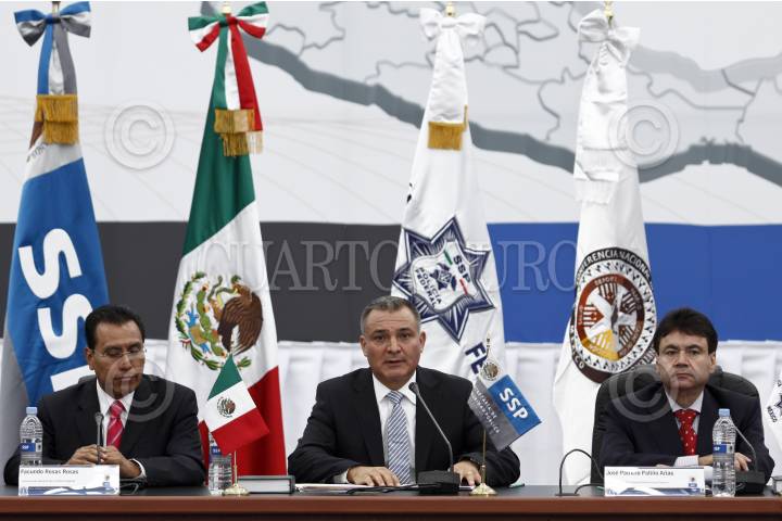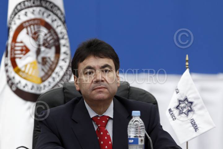 MÉXICO, D.F., 07SEPTIEMBRE2011.- Genaro Garcia Luna, secretario de Seguridad Pública Federal, acompañado de Facundo Rosas, comisionado general de la Policía Federal y José Patricio Patiño, subsecretario del Sistema Penitenciario Federal durante una conferencia de prensa luego de una reunión de la 6ta Conferencia Nacional de Secretarios de Seguridad Pública que se realizo en el Centro de Alto Mando de la Policía Federal. FOTO: RODOLFO ANGULO/CUARTOSCURO.COM