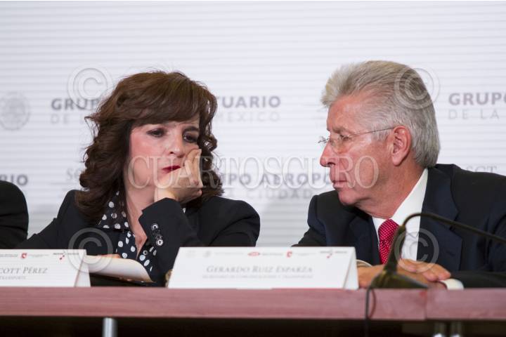 CIUDAD MÉXICO, 02FEBRERO2017.- Gerardo Ruiz Esparza, secretario de Comunicaciones y Yuriria Mascott Pérez, subsecretaria de Transporte, durante la presentación de las licitaciones 2017 para el Nuevo Aeropuerto de la Ciudad de México. FOTO: GALO CAÑAS /CUARTOSCURO.COM