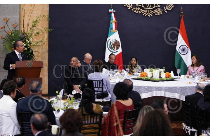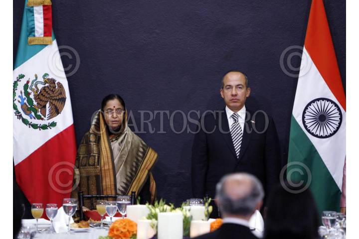 MÉXICO, D.F., 17ABRIL2008.- El presidente Felipe Calderón acompañado de su esposa Margarita Zavala durante la cena en honor a la presideta de la Republica de India Pratiba Devisingh Patil y su esposo Devisingh Shekhawat, en el salon Adolfo Lopez Mateos de la residencia oficial de los Pinos. FOTO: ALFREDO GUERRERO/CUARTOSCURO.COM