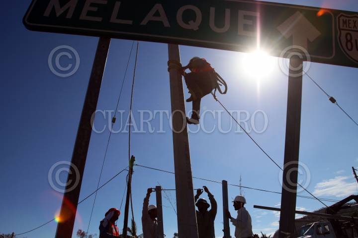 CIHUATLÁN, JALISCO. 25OCTUBRE15.-Personal de la Comisión Federal de Elecrricidad trabaja en las obras de reinstalación del suministro en la Costa Alegre del estado, por los daños que dejó a su paso el Huracán, Patricia durante su paso por Jalisco, México. FOTO: FERNANDO CARRANZA GARCIA / CUARTOSCURO.COM