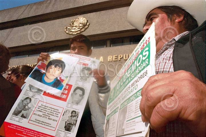 Familiares de niños desapareciso se manifestaron frente a la PGR mientras se desarrollaba adentro la Campaña contra la Prostitución y la Pornografía Infantil. FOTO:Chirstian Palma/CUARTOSCURO.COM