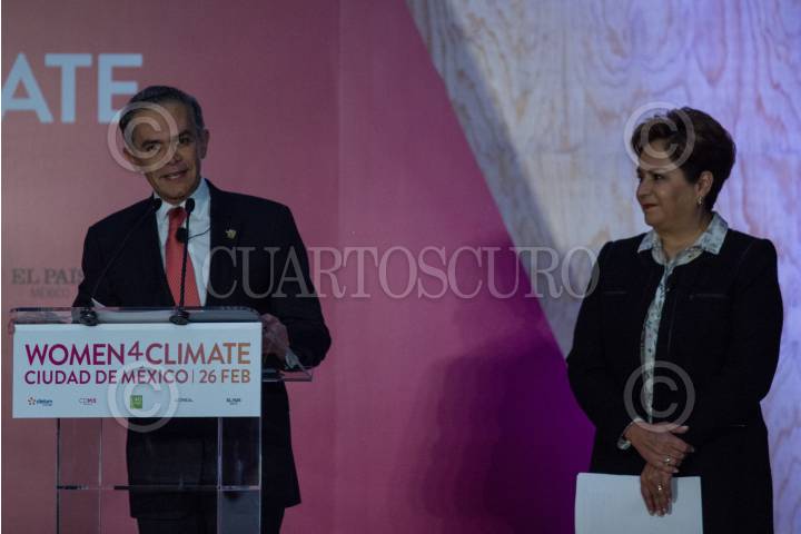 CIUDAD DE MÉXICO, 26FEBRERO2018.- Miguel Ángel Mancera, jefe gobierno de la Ciudad de México, y Patricia Espinosa, secretaria ejecutiva de la Convención Marco de Naciones Unidas sobre Cambio Climático, durante la inauguración del segundo encuentro “Mujeres por el Clima” del C40, en el Museo Interactivo de Economía (MIDE). FOTO: GALO CAÑAS /CUARTOSCURO.COM
