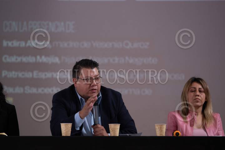 Familiares de Alejandra Negrete, Mile Martín, Nadia Vera, Yesenia Quiroz y el fotoperiodista Rubén Espinosa, ofrecieron una conferencia de prensa para presentar información relevante para la investigación del caso afuera de la Fiscalía General de Justicia, a ocho años del multifeminicidio ocurrido en el departamento de Luz Saviñón en la colonia Narvarte