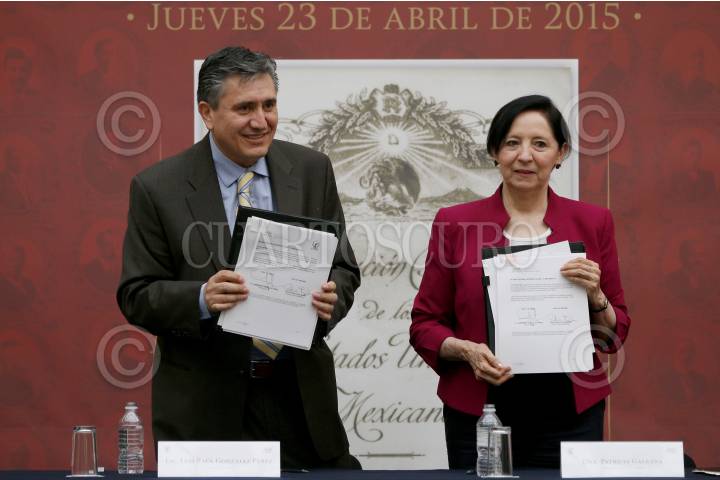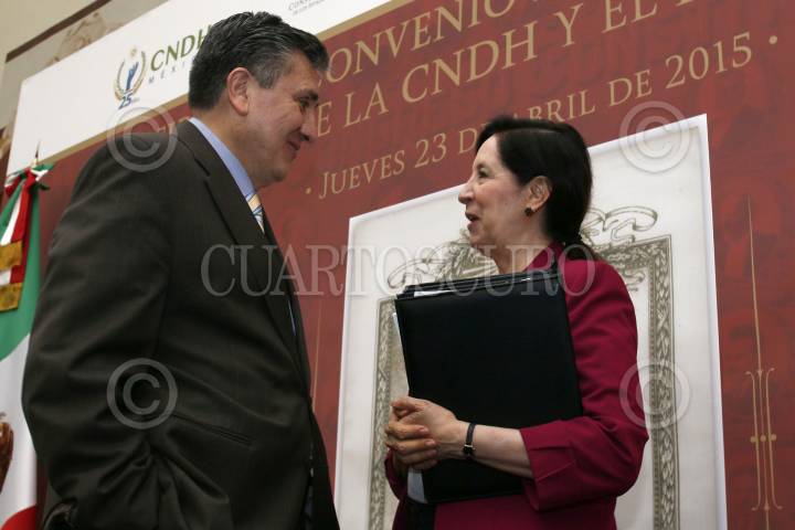 MÉXICO, D.F., 23ABRIL2015.- El presidente de la CNDH, Luis Raúl González Pérez firmó un convenio de colaboración con el INEHRM, que encabeza Patricia Galeana, que se inscribe en el 25 aniversario de la CNDH y el próximo centenario de la Carta Magna. FOTO: CNDH /CUARTOSCURO.COM