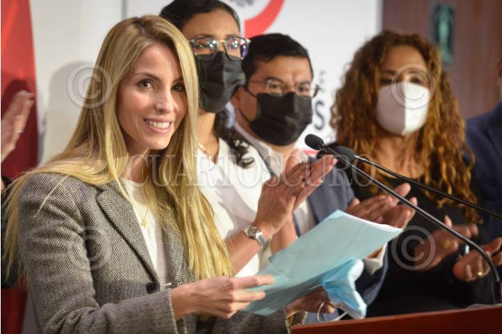Patricia Lobeira, esposa de Miguel Ángel Yunes Márquez , ofreció conferencia de prensa en la Cámara de Diputados para informar su inconformidad ante la decisión que realizó el Tribunal Electoral de Veracruz al declarar nula su elección como alcaldesa de Veracruz.