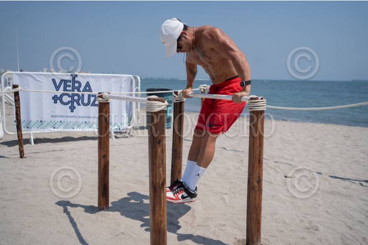 La alcaldesa de Veracruz, Patricia Lobeira, puso en marcha un gimnasio gratuito al aire libre en la playa Martí para fomentar el ejercicio entre la población.