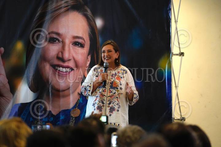 Conferencia de Xóchitl Gálvez durante su visita a Xalapa, Veracruz.