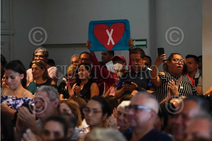 Aspectos de los asistentes a la conferencia de Xóchitl Gálvez durante su visita a Xalapa, Veracruz.