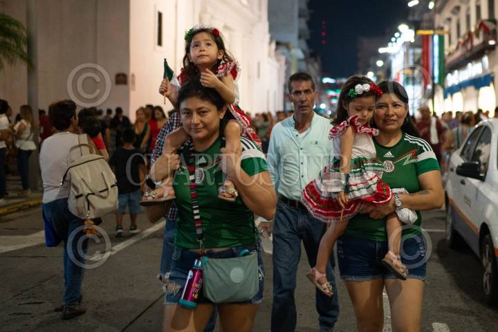 VERACRUZ, VERACRUZ, 15SEPTIEMBRE2023.- La alcaldesa Patricia Lobeira dio el Grito de Independencia alrededor de las 11 de la noche de este viernes 15 de septiembre en el balcón del Palacio Municipal, donde cientos de Veracruzanos asistieron a la celebración en la plaza de la constitución vestidos con el tricolor mexicano para celebrar la independencia. FOTO: VICTORIA RAZO/CUARTOSCURO.COM