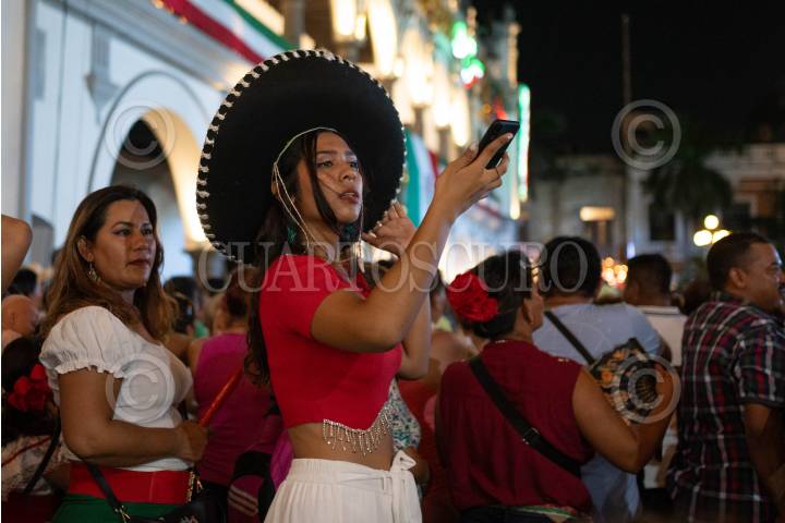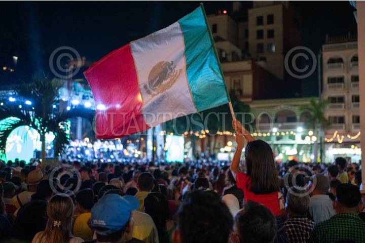 VERACRUZ,VERACRUZ 15SEPTIEMBRE2025.- La noche de este lunes, la alcaldesa Patricia Lobeira realizó el Grito de Independencia en el Zócalo de Veracruz, en el último año de su administración municipal. La plaza se llenó de personas que acudieron con sus banderas de México y entonaron el himno nacional. FOTO: VICTORIA RAZO/CUARTOSCURO.COM