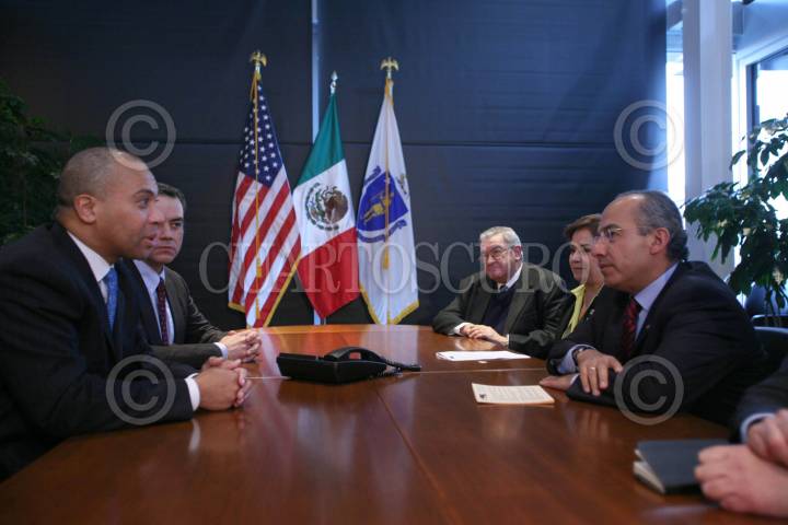 BOSTÓN E.U.11FEBRERO2008.- El presidente de México Felipe Calderón sostuvo un encuentro con el gobernador de Massachusetts Deval Patrick. FOTO: ALFREDO GUERRERO/CUARTOSCURO.COM