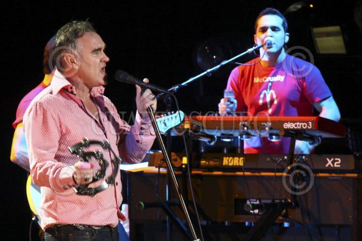 SAN ANDRÉS CHOLULA, PUEBLA, 10DICIEMBRE2011.- El cantante y compositor británico Steven Patrick Morrissey, ex-vocalista de la banda de rock The Smiths, durante concierto en el que cautivó a sus fans que abarrotaron el auditorio del Comlejo Cultural Universitario en la ciudad de Puebla. FOTO: HILDA RIOS/CUARTOSCURO.COM