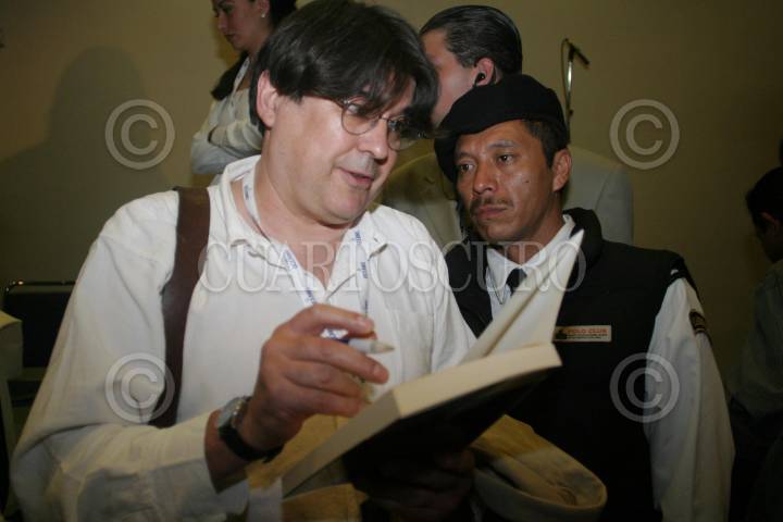 México, D. F. 24 Abril 2004.- Patrick Bard, autor del libro La Frontera que toca el tema de la mujeres asesinada en ciudad Juárez Chihuahua, firma libros al termino de la presentación de dicha obra. FOTO: Nelly Salas/CUARTOSCURO.COM