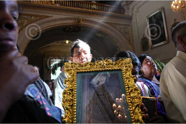 OAXACA, OAXACA, 18DICIEMBRE2007.- Cientos de oaxaqueños celebran las fiestas de la Santa Patrona de la Virgen de la Soledad, sus fieles se forman desde temparana hora para vendencir a sus santos y ceras, algunos llegan de rodillas a la Basilica de Nuestra Señora de la Soledad. FOTO: MAX NUÑEZ/CUARTOSCURO.COM