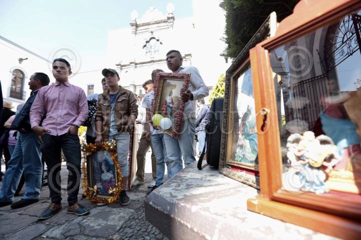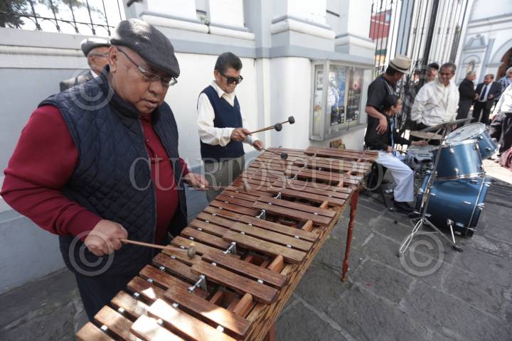 TOLUCA, ESTADO DE MÉXICO, 22NOVIEMBRE2018.- Músicos de Toluca acudieron a la iglesia de la Merced para festejar a Santa Cecilia, patrona de los músicos, a quien le cantaron las mañanitas con marimba y llevaron sus imágenes a bendecir y pedir un año lleno de trabajo. FOTO/ ARTEMIO GUERRA BAZ /CUARTOSCURO.COM