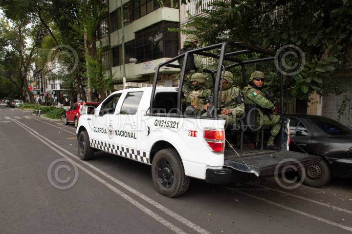 CIUDAD DE MÉXICO, 07AGOSTO2019.- Elementos de la Guardia Nacional, patrullaron la tarde de este miércoles las calles de la Colonia Condesa. Cabe mencionar que en lo que va del año el delito de robo a transeúnte aumentó un 251% en la alcaldía Cuauhtémoc. FOTO: ROGELIO MORALES /CUARTOSCURO.COM