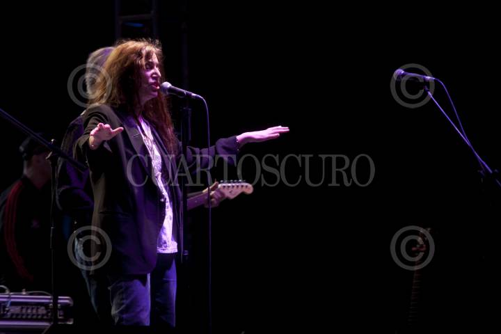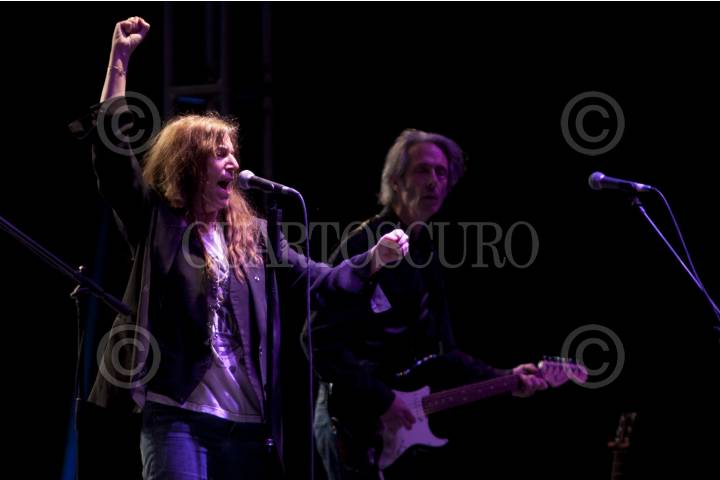 MÉXICO, D.F., 05MAYO2012.- La leyenda del Rock y poeta, Patti Smith, se presentó la noche de hoy en el Museo Diego Rivera Anahuacalli en el marco del 28 FEstival México. La cantante declaró un día antes en conferencia de prensa sentirse inspirada en Diego Rivera y Frida Khalo. FOTO: FRANCISCO RODRÍGUEZ /CUARTOSCURO.COM