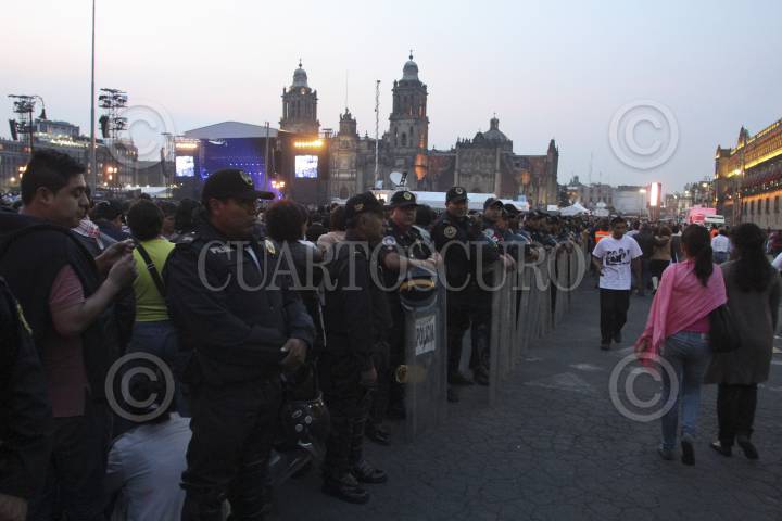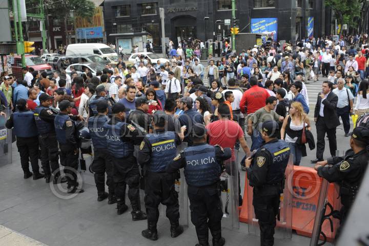 MÉXICO, D.F., 10MAYO2012.- Granaderos de la Secretaria de Seguridad Pública del Distrito Federal, realizaron retenes sobre la calle de Madero previo al concierto masivo que ofrecera el cantante británico Paul McCartney en el zocalo calpitalino. FOTO: LUIS CARBAYO/CUARTOSCURO.COM.