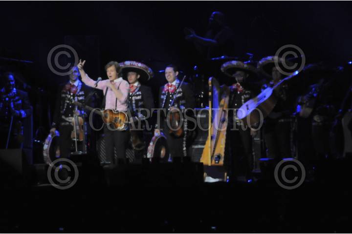 MÉXICO, D.F., 10MAYO2012.- Durante el concierto que ofreció el ingles Paul McCartney, interpreto la canción "Ob ladi Ob lada" acompañado por el Mariachi Gama 1000 que enloqueció a más de 90 mil asistentes al Zócalo capitalino la noche de hoy. FOTO: FRANCISCO RODRÍGUEZ /CUARTOSCURO.COM