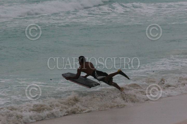 CANCÚN, QUINTANA ROO, 13OCTUBRE2010.- El huracán Paula paso cerca de las costas del estado sin dejar daño alguno por lo que se levanto la alerta roja. Los surfistas aprovecharon las olas del mal tiempo y la marina implemento el plan marina y realizo recorridos en la ciudad. FOTO: AMARANTA PRIETO/CUARTOSCURO.COM
