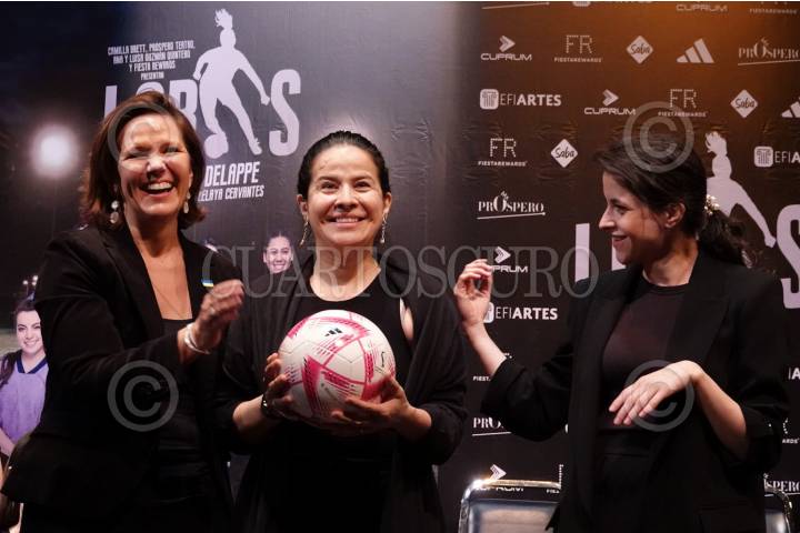 La actriz Arcelia Ramírez, acompañada de actrices del elenco de la puesta en escena "Las Lobas", durante una conferencia de prensa en el Foro Cultural Chapultepec