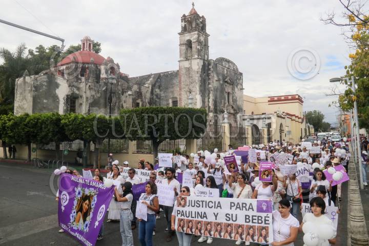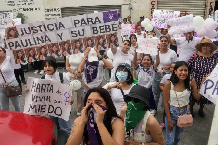CUAUTLA, MORELOS, 10ENERO2025.- Marcha de solidaridad con la familia de Paulina, joven de 20 años con 39 semanas de gestación que fue asesinada por su pareja sentimental y abandonada dentro de un tambo en un paraje despoblado de la carretera Moyotepec-Tlatizapan el 4 de enero. Los participantes exigen una pena ejemplar por el feminicidio e infanticidio. La marcha recorrió las principales calles de este municipio hasta llegar a la Ciudad Judicial donde se desarrolla la audiencia. FOTO: MARGARITO PÉREZ RETANA/CUARTOSCURO.COM
