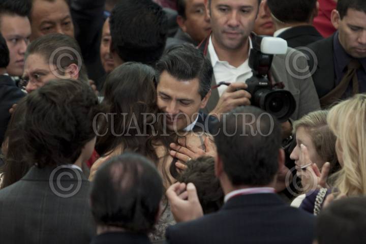 MÉXICO, D.F. 17DICIEMBRE2011.- Enrique Peña Nieto y su hija Paulina Peña Pretelini después de recibir este medio día su constancia de candidato único presidencial del Partido Revolucionario Institucional a la Presidencia de la República durante un evento en la explanada de la sede nacional del PRI. FOTO: RODOLFO ANGULO/CUARTOSCURO.COM