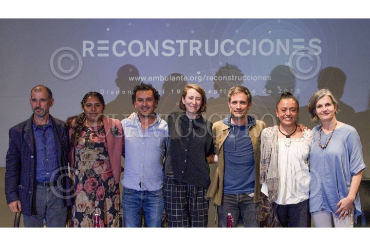 CIUDAD DE MÉXICO, 17SEPTIEMBRE2019.- Sandy de la Rosa Cárdenas, representante de Grupo Barrios de Tepecoculco; Nabani Vera, representante de Isla Urbana; Paulina Suárez, directora general de Ambulante; Gael García Bernal, actor y cofundador de Ambulante; Alma Benítez, representante de Xoxocotla Morelos y Christiane Burkhard, directora de Reconstrucciones, encabezaron la presentación del lanzamiento de la plataforma “Reconstrucciones” del proyecto Levantemos México. En su primera etapa la plataforma reúne más de cien minutos de material audiovisual y 50 galerías fotográficas de las experiencias y relatos sobre el trabajo de reconstrucción de las comunidades más afectadas por los terremotos del 2017. FOTO: MARIO JASSO /CUARTOSCURO.COM