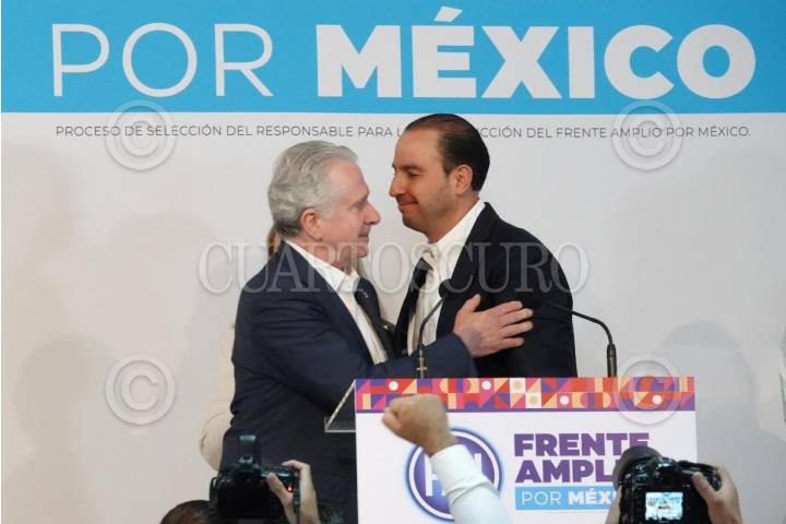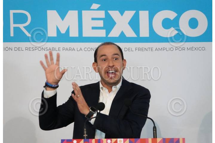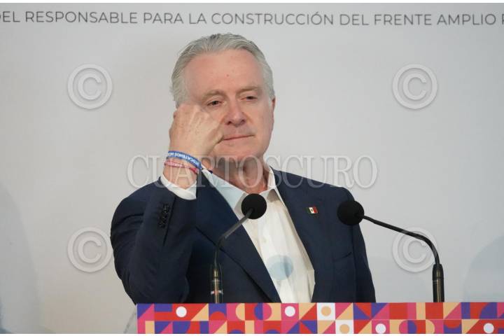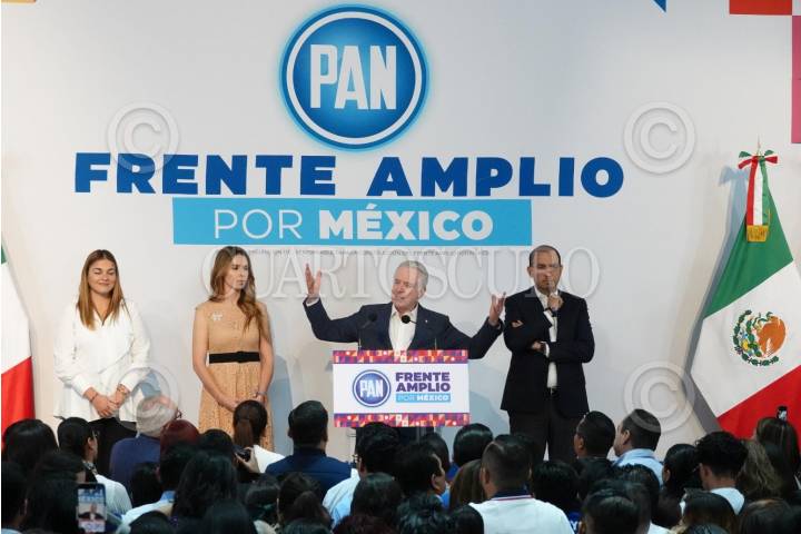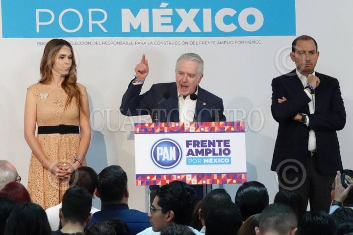 Marko Cortés, presidente ejecutivo del Pan, durante el registro de Santiago Creel en las inmediaciones del PAN
