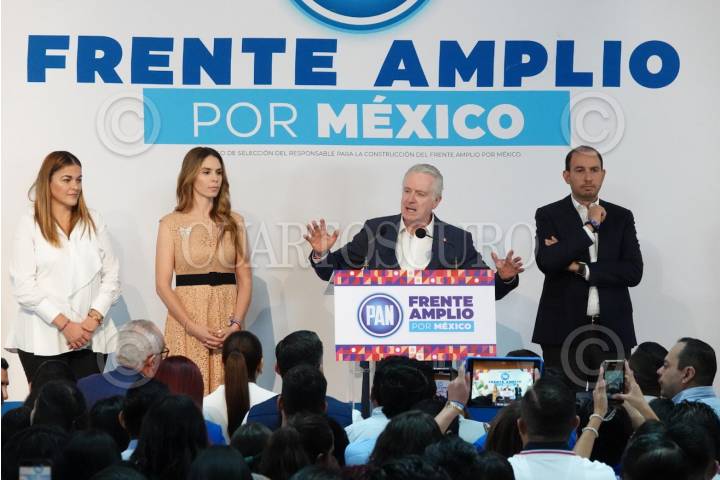 Santiago Creel acompañado de su esposa Paulina Velasco acudieron al registro a la candidatura a la presidencia por el Frente Amplio por México, realizado en las inmediaciones del PAN