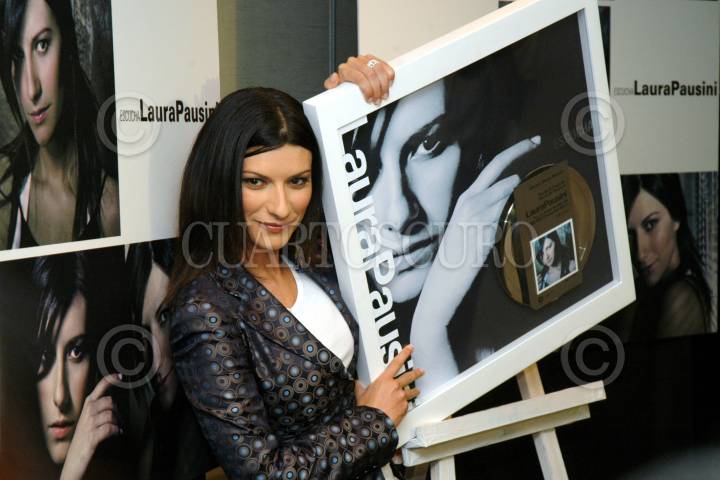 MEXICO, DF 29AGOSTO2005.- La cantante italiana Laura Pausini recibió un disco de platino por mas de cien mil copias vendidas de su disco Escucha FOTO: Miguel Dimayuga/CUARTOSCURO.COM