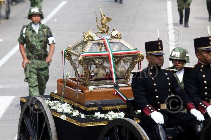 MÉXICO, D.F., 15AGOSTO2010.- La urnas de Miguel Hidalgo, Ignacio Allende, José María Morelos y Pavón, Víctor Rosales, Juan Aldama, Mariano Jiménez, Mariano Matamoros, Pedro Moreno, Francisco Javier Mina, Vicente Guerrero, Leona Vicario, Guadalupe Victoria, Andrés Quintana Roo y Nicolás Bravo fueron trasladados del Castillo de Chapultepec a Palacio Nacional en un desfile como parte de las conmemoraciones del Bicentenario de la Independencia. FOTO: RODOLFO ANGULO/CUARTOSCURO.COM