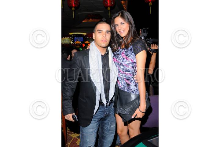 MÉXICO, D.F., 08JUNIO2011.- El cantante de musica tropical, Emir Pavón y su novia, Karla Contreras, asisiteron al segundo torneo "Texas Holdem" para la fundación "Código Ayuda" de Gabriela Goldsmith realizado en el Royal Yak del Hipódromo de las Americas. FOTO: FRANCISCO RODRÍGURZ/CUARTOSCURO.COM