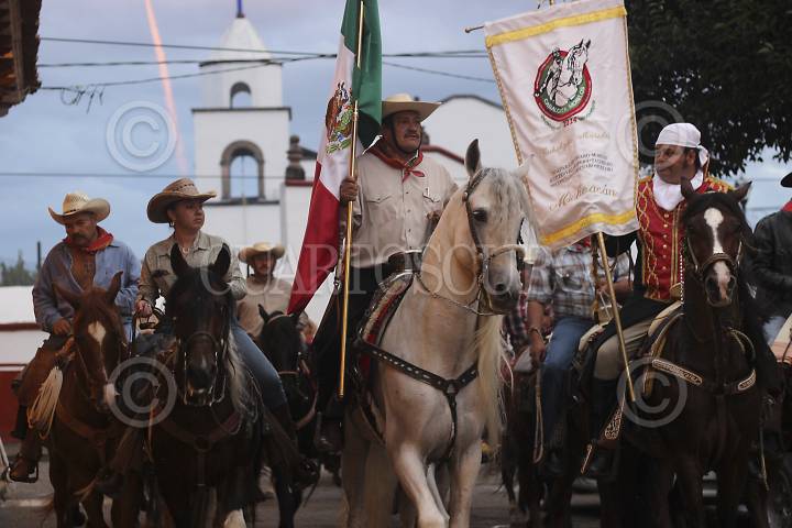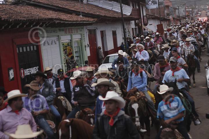 VILLA MADERO, MICHOACÁN. 21OCTUBRE2014.- La cabalgata Morelos llegó al municipio de Villa Madero que salió desde el municipio de Idaparapero y que culminará en el municipio de Huetamo, en conmemoración al movimiento que en 1810 el Generalísimo Don José María Morelos y Pavón iniciara para levantar tropas, cumpliendo con ello las instrucciones de Don Miguel Hidalgo y Costilla de sitiar el sur de la nación, los cabalgantes, una vez más, honraron la memoria del Siervo de la Nación y con orgullo, portando las banderas oficiales de cada municipio, realizaron el mismo recorrido que hace 204 años realizara el lugarteniente. FOTO: JUAN JOSÉ ESTRADA SERAFÍN /CUARTOSCURO.COM