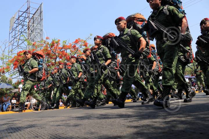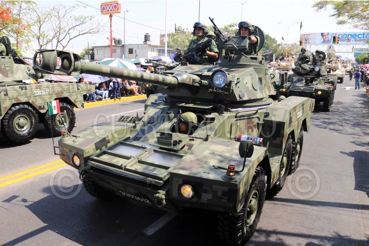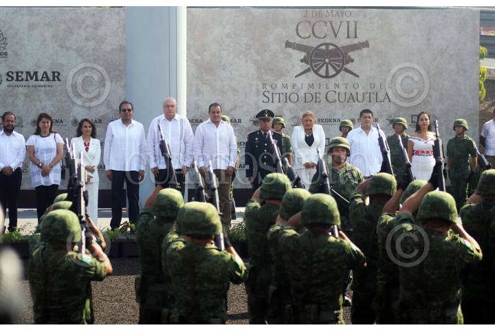 CUAUTLA, MORELOS, 02MAYO2019.- Desfile militar conmemorativo por el 207 aniversario del Rompimiento del Sitio de Cuautla encabezado por el gobernador, Cuauhtémoc Blanco Bravo, y el comandante de la Primera Región Militar, Rogelio Armando Patiño Canchola. La parada militar es organizada por la Secretaría de la Defensa Nacional y honra la gesta histórica del generalísimo José María Morelos, que se mantuvo en esta ciudad desde el 19 de febrero hasta el 2 de mayo del año 1812 resistiendo el embate del Ejército Realista encabezado por Félix María Calleja, hasta que en la última fecha los rebeldes salieron de la ciudad rumbo al norte. FOTO: MARGARITO PÉREZ RETANA /CUARTOSCURO.COM
