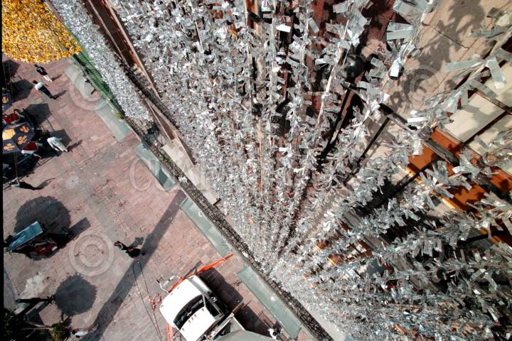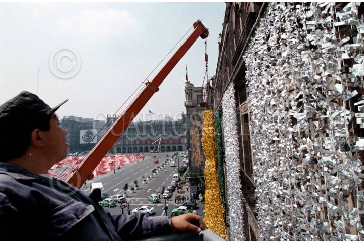 El gobierno capitalino está por terminar la colocación de arreglos alusivos al mes patrio en el Centro Histórico. FOTO: Eunice Adorno/CUARTOSCURO.COM