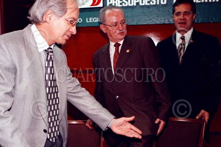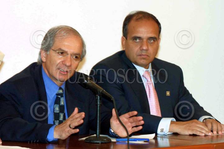 MÉXICO, D.F., 14NOVIEMBRE2006.- Luis Pazos, titular de Banobras, durante la firma del convenio de colaboración del Plan de Modernización del Justicia del DF, en la sede del Tribunal de Justicia del DF. FOTO: MOISÉS PABLO/CUARTOSCURO.COM