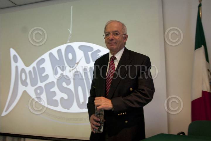 MÉXICO, D.F., 12MARZO2012.- Luis Pazos de la Torre Presidente de la CONDUSEF acompañado de Luis Fabre Pruneda Vicepresidente Técnico de este organismo durante la presentación de la campaña preventiva “Que No Te Pesquen” que se suma a la campaña ‘¡Aguas! Ponte Buzo', de la Asociación de Bancos de México. Los esfuerzos estarán enfocados a la prevención de fraudes en tarjetas de crédito y débito. FOTO: GUILLERMO PEREA /CUARTOSCURO.COM