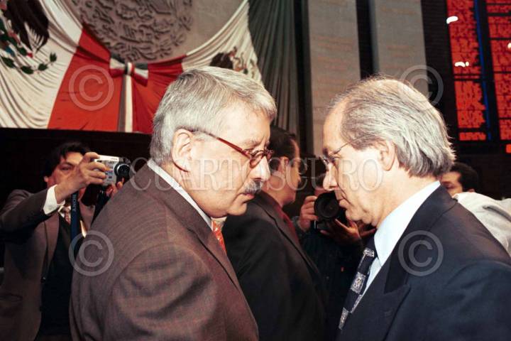 Los diputados Oscar Levín Coppel (PRI) y Luis Pazos (PAN) momentos antes de iniciar el segundo periodo ordinario de sesiones en la Cámara de Diputados. FOTO: Oswaldo Ramírez/CUARTOSCURO.COM