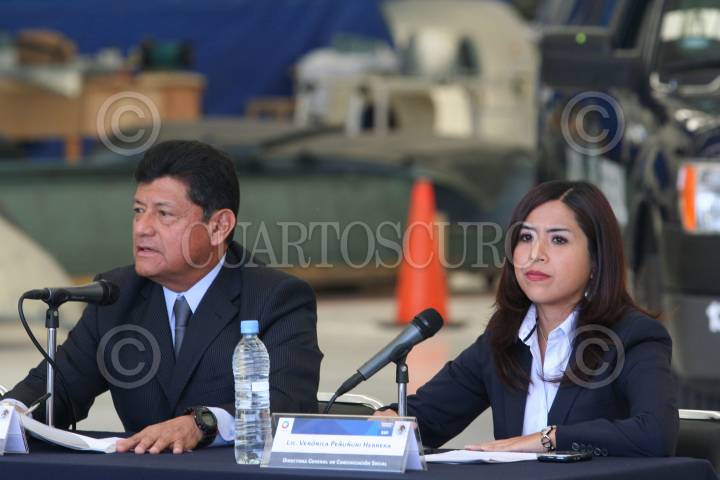 MÉXICO, D.F., 14MARZO2009.- Eduardo Valdivia, procurador de justicia de Aguascalientes, Rolando Eugenio Hidalgo, Secretario de Seguridad Publica de Aguascalientes, Luis Cardenas Palomino Coordinador de Inteligencia para la prevencion de la PFP, Rodolfo Cruz Lopez Comisario de las Fuerzas Federales de Apoyo de la PFP y Veronica Peñuñuri, directora de comunicación de la SSP Federal, dieron los pormenores de la detencion de la red de secuestradores denominados “Los Fuereños”, quien mantenían secuestrados en una casa de seguridad a dos personas y un menor. Los implicados serán puestos a disposición de la SIEDO para que dictaminen su estado jurídico. FOTO: SAÚL LÓPEZ/CUARTOSCURO.COM