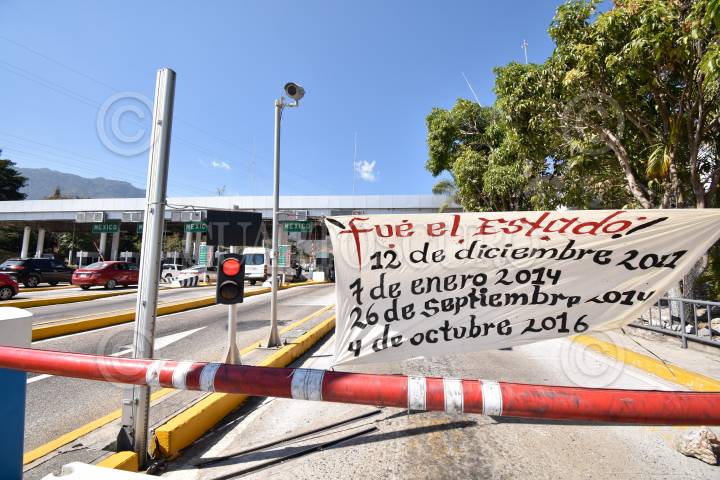 Estudiantes de la Escuela Normal Rural ‘Raúl Isidro Burgos’ de Ayotzinapa tomaron la caseta de cobro de la Autopista del Sol para recaudar fondos para sustentar sus movilizaciones y la manutención de su plantel.